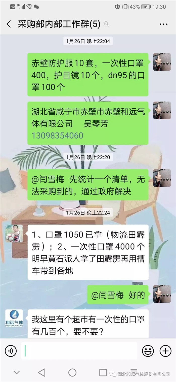 采購(gòu)部人員全力為疫情防護(hù)物資提供保障,他們放棄了過年假期,從年初二開始,不分晝夜,不停地向多方打聽防護(hù)資源,為全公司防護(hù)用品提供了保障。同時(shí),為公司醫(yī)用氧建站物資提供貨源保障,通知供應(yīng)商緊急備貨,使得大別山項(xiàng)目物資在兩日內(nèi)配備到位。