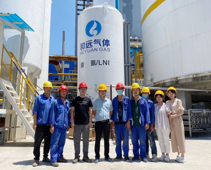 潛江項目投產(chǎn)在即,時間緊、任務(wù)重,壓力大,受公司黨支部委托,和遠(yuǎn)氣體黨支部組織委員向松庭一行前往潛江和遠(yuǎn)15000空分及年產(chǎn)7萬噸食品級液氮項目現(xiàn)場,為在高溫下堅守一線的工作人員送去組織的關(guān)心。